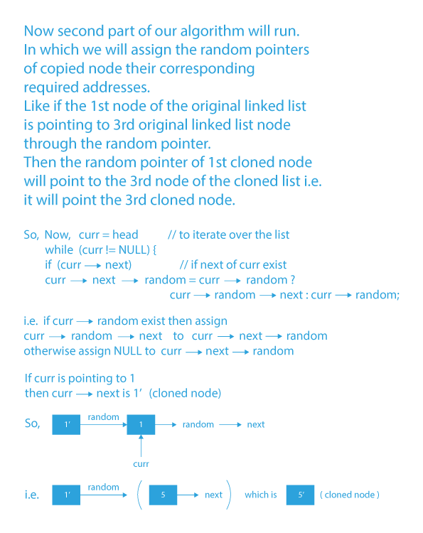 Let’s move to the algorithm section to see the above approach to clone a linked list with next and random pointer step by step in detail.