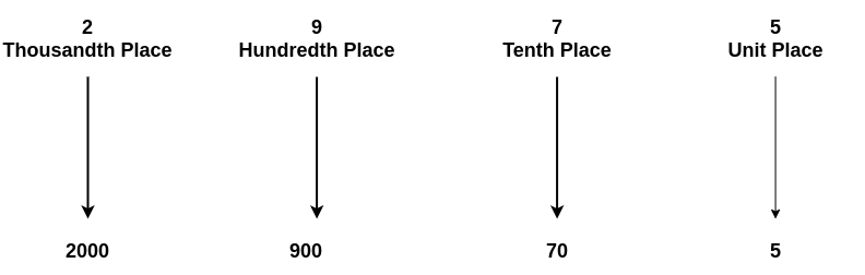 2) We scan number from left to right digit by digit and print digit’s respective value depending on its unit place whether 1000th unit place, 100th unit place, 10th unit place, or unit place.