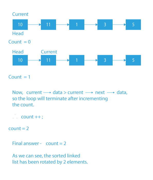Dry Run To Find Number Of Rotations In A Sorted Linked List