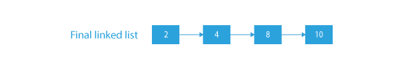 The middle node of this list is 6. We have to remove the middle node from the list. After we remove the middle node, the final linked list will look like this: