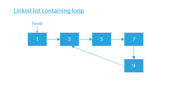 The linked list contains a loop means the last node in the list will not be pointing to the NULL instead, it will be pointing to some other node in the list.