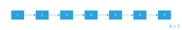 Suppose we are given a linked list A → B → C → D → E → F and k = 3.