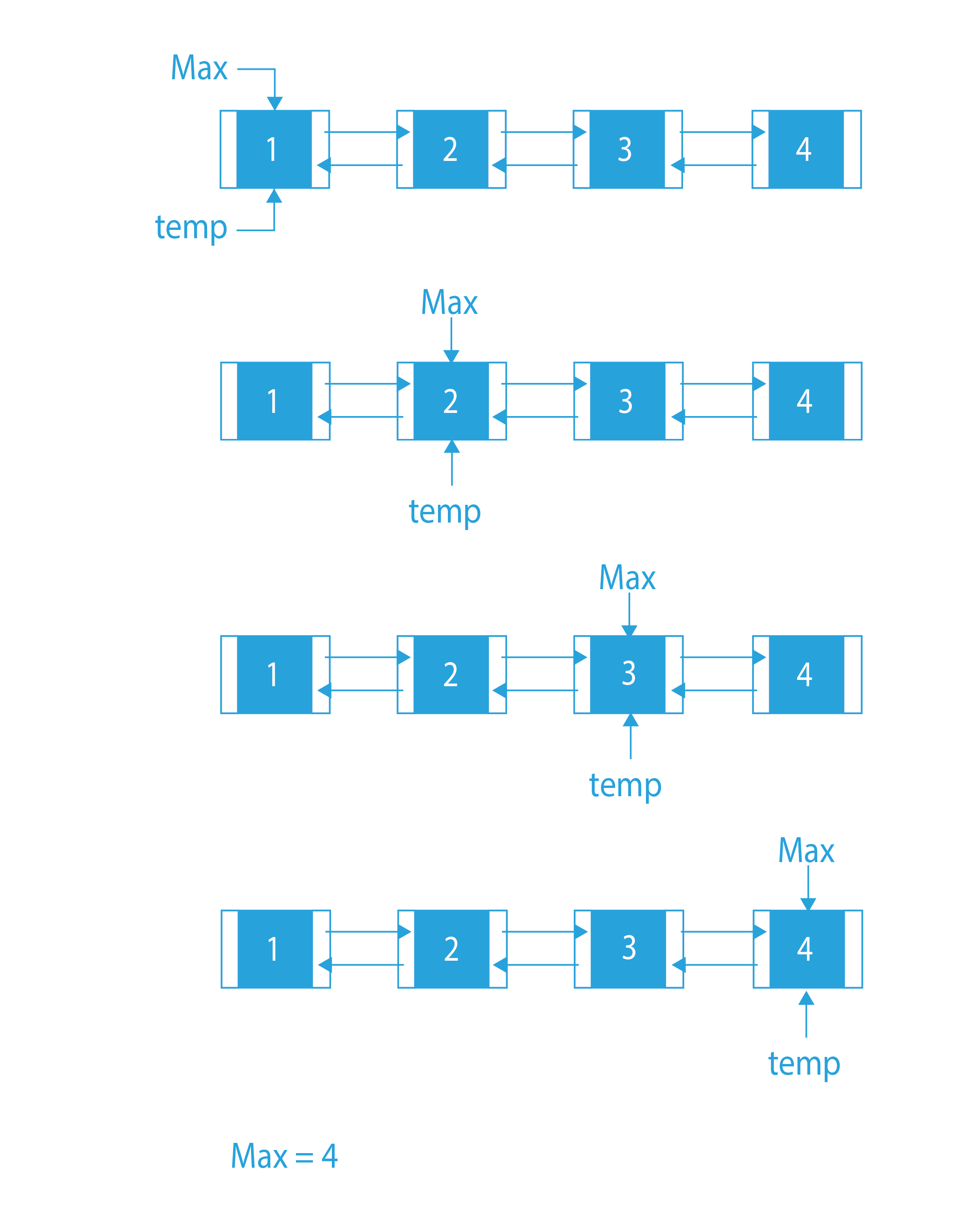 • If at any point, temp’s data is greater than MAX’s data, then we will put MAX=temp.