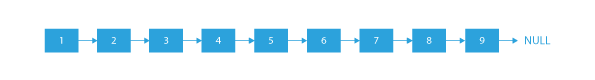 1 -> 2 -> 3 -> 4 -> 5 -> 6 -> 7 -> 8 -> 9 -> NULL