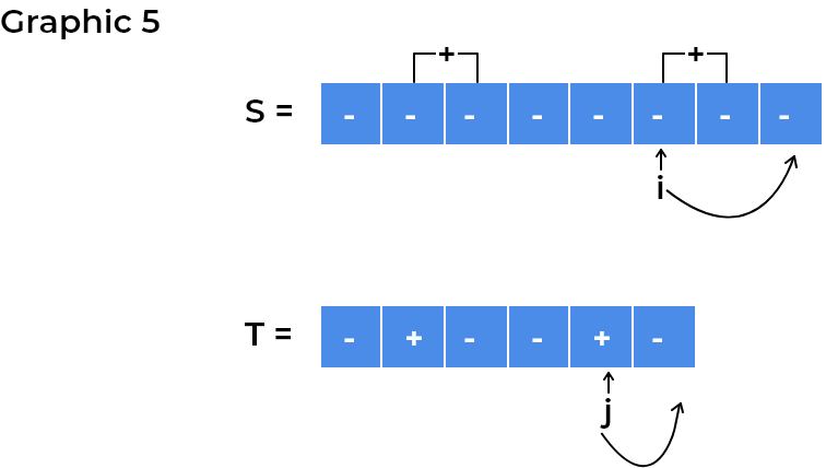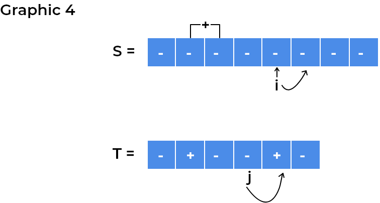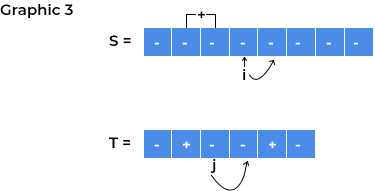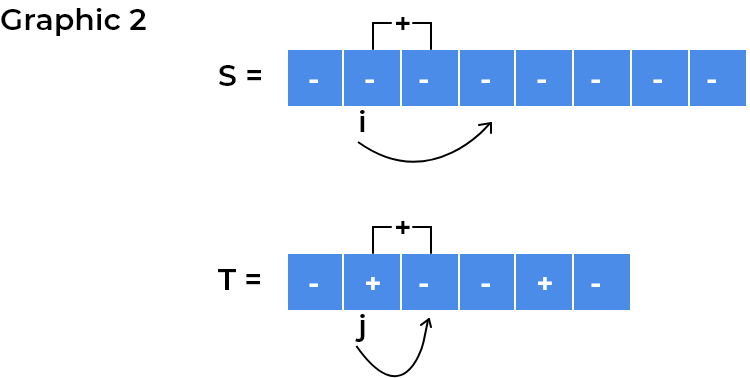 Here we can see if we convert '--' starting at index 2 to '+', string S becomes string T.