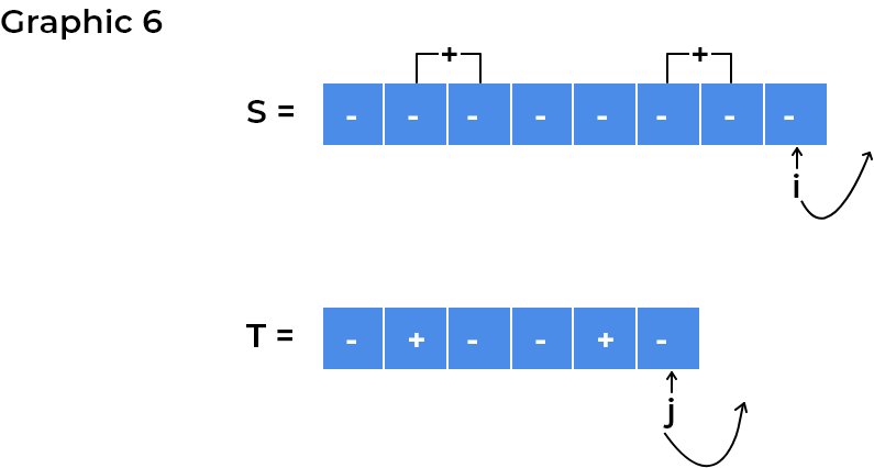}else if((t[i-diff] == '+' && s[i] == '+') || (t[i-diff] == '-' && s[i] == '-') ){