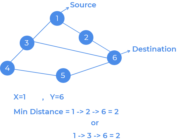 x) which is adjacent to some vertex (y) and store its distance asdistance[x]=distance[y]+1. Finally we can get the distance of our destination vertexdatdistance[d].