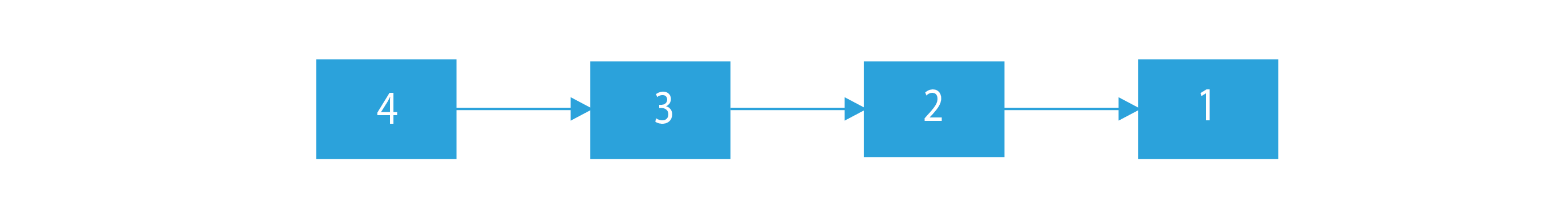 Let the given linked list be 1 -> 2 -> 3 -> 4. Now, with the help of recursion, we have to reverse the linked list. The reverse linked list is 4 -> 3 -> 2 -> 1.