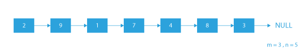 Let’s take another example, let the input be 9→4→8→7→1→NULL, m = 2, n = 3.